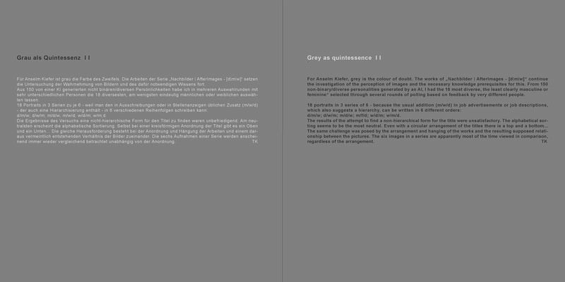 Mit seiner Serie "Nachbilder - After Images" taucht der Filmemacher, Fotograf und Kameramann Thomas Kutschker in die Tiefen der visuellen Wahrnehmung ein und stellt Fragen zur Natur des Bildes. Ähnlich wie bereits in "Blickwinkel/Points of View" - durchbricht er auch diesmal wieder die klassische Erwartungshaltung und hinterfragt die traditionellen Vorstellungen des Sehens und Erkennens. Während Kutschker die Erwartungen an ikonische Orte in "Blickwinkel/Points of View" herausfordert, geht die Serie "Nachbilder - After Images" noch einen Schritt weiter. Die Aufnahmen von realen Objekten konfrontieren den Betrachter nicht nur mit unerwarteten Blickwinkeln, sondern mit einer Auslöschung der Bildinhalte. Denn die hier verwendete Technik der Doppelbelichtung des eigenen Negativs führt zu schemenhaften Bildfragmenten, die sich nur minimal vom Durchschnittsgrau abheben. In Anlehnung an Kutschkers Spiel mit der Erwartungshaltung, fordert er mit der neuen Serie "Nachbilder - After Images" dazu auf, das Bild nicht nur durch den Titel zu interpretieren, sondern auch mit dem eigenen Bildervorrat intuitiv zu vervollständigen. Der Künstler bringt so die Betrachter dazu, das betrachtete Bild mit dem eigenen Bildervorrat des bisher Gesehenen zu rekonstruieren. Und regt so dazu an, sich mit dem eigenen visuellen Archiv auseinanderzusetzen. Kutschkers Bilder sind mehr als nur visuelle Experimente. Sie werfen grundlegende Fragen zur Natur der Wahrnehmung auf: Was sieht man wirklich, wenn die Bildinhalte so gut wie ausgelöscht sind? Wie gehen wir mit einem Bild um, wenn der Titel nicht ausreicht, um es zu verstehen?