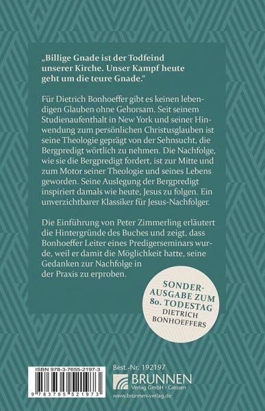Die Tatsache, dass Bonhoeffer den Weg der Nachfolge bis zum Schluss ging, bis in den Tod, verleiht dem Buch noch einmal zusätzlich ein besonderes Gewicht.
