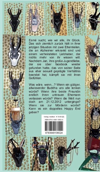 Esmé sucht, wie wir alle, ihr Glück. Das sich ziemlich zurück hält in ihrer jetzigen Situation mit zwei Elternteilen, die an Alzheimer erkrankt sind und einem verheirateten Liebhaber, der nichts mehr von ihr wissen will. Nachdem Jan, ihre große Jugendliebe, der sie über facebook wieder gefunden hatte, das von seiner Seite aus eher sexuell geprägte Verhältnis beendet hat, kämpft sie mit ihren Gefühlen. Und muss immer wieder feststellen, dass egal wie analytisch der Verstand einer vernünftigen Person arbeitet die Emotionen letztendlich siegen.Was wäre, wenn...? Wenn ein gütiger, allwissender Buddha uns alle lenken würde?Wenn ihre beste Freundin endlich ihren untreuen Ehemann verlassen würde?Wenn die Welt nun doch am 21.12.2012 unterginge?Wenn sie zur Mörderin würde?Ist es wirklich so schwierig, einen geeigneten Partner kennenzulernen?Was hat der Maya-Kalender mit dem Weltuntergang zu tun?Wie kann man Trauer bewältigen?Kann es ein doppeltes Happy End geben?