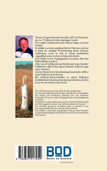 Thomas Wegen bekommt im Jahre 2007 ein Päckchen, das vor 70 Jahren für ihn eingelagert wurde.Wer wußte von ihm und seiner heutigen Adresse, lange vor seiner Geburt?Er erfährt von einer ungeheuerlichen Zeitreise, und nur er kann die ständige Wiederholung dieser Zeitreise verhindern, wenn er sich in einem bestimmten Augenblick seines Lebens richtig entscheidet.Zwei Helfer in der Vergangenheit versuchen, ihm eine Hilfestellung zu geben. Aber was ist richtig und gut für ihn und seine Familie?Gefährdet er dabei seine eigene Zukunft, vielleicht sogar seine Existenz und die seiner Familie?Als der Moment der Entscheidung heranrückt, trifft er seine Wahl mit dem Herzen.Ein Zeitreise-SF/Mysterythriller in einem brillanten Erzählstil mit Gänsehautcharakter geschrieben, der den Leser bis zur letzten Zeile fesselt.