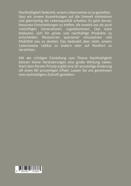 Nachhaltigkeit bedeutet, unsere Lebensweise so zu gestalten, dass wir unsere Auswirkungen auf die Umwelt minimieren und gleichzeitig die Lebensqualität erhalten. Es geht darum, bewusste Entscheidungen zu treffen, die sowohl uns als auch zukünftigen Generationen zugutekommen. Das kann bedeuten, sich für grüne und nachhaltige Produkte zu entscheiden, Ressourcen sparsamer einzusetzen und Mobilität neu zu denken. Das bedeutet aber nicht, unsere Lebensweise radikal zu ändern oder auf Komfort zu verzichten. Mit der richtigen Einstellung zum Thema Nachhaltigkeit können kleine Veränderungen eine große Wirkung haben. Nach dem Pareto-Prinzip ergibt eine 20-prozentige Änderung oft einen 80-prozentigen Effekt. Lassen Sie uns gemeinsam eine nachhaltigere Zukunft gestalten.