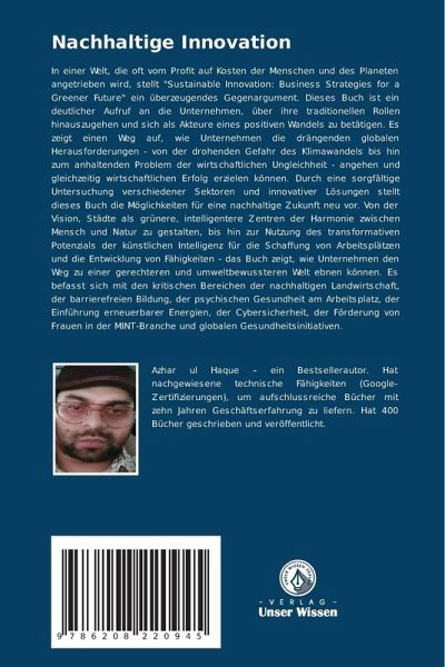 In einer Welt, die oft vom Profit auf Kosten der Menschen und des Planeten angetrieben wird, stellt "Sustainable Innovation: Business Strategies for a Greener Future" ein überzeugendes Gegenargument. Dieses Buch ist ein deutlicher Aufruf an die Unternehmen, über ihre traditionellen Rollen hinauszugehen und sich als Akteure eines positiven Wandels zu betätigen. Es zeigt einen Weg auf, wie Unternehmen die drängenden globalen Herausforderungen - von der drohenden Gefahr des Klimawandels bis hin zum anhaltenden Problem der wirtschaftlichen Ungleichheit - angehen und gleichzeitig wirtschaftlichen Erfolg erzielen können. Durch eine sorgfältige Untersuchung verschiedener Sektoren und innovativer Lösungen stellt dieses Buch die Möglichkeiten für eine nachhaltige Zukunft neu vor. Von der Vision, Städte als grünere, intelligentere Zentren der Harmonie zwischen Mensch und Natur zu gestalten, bis hin zur Nutzung des transformativen Potenzials der künstlichen Intelligenz für die Schaffung vonArbeitsplätzen und die Entwicklung von Fähigkeiten - das Buch zeigt, wie Unternehmen den Weg zu einer gerechteren und umweltbewussteren Welt ebnen können. Es befasst sich mit den kritischen Bereichen der nachhaltigen Landwirtschaft, der barrierefreien Bildung, der psychischen Gesundheit am Arbeitsplatz, der Einführung erneuerbarer Energien, der Cybersicherheit, der Förderung von Frauen in der MINT-Branche und globalen Gesundheitsinitiativen.