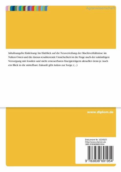 Im Hinblick auf die Neuverteilung der Machtverhältnisse im Nahen Osten und die daraus resultierende Unsicherheit ist die Frage nach der zukünftigen Versorgung mit fossilen und nicht erneuerbaren Energieträgern aktueller denn je.