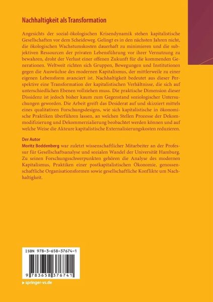 Angesichts der sozial-ökologischen Krisendynamik stehen kapitalistische Gesellschaften vor dem Scheideweg. Gelingt es in den nächsten Jahren nicht, die ökologischen Wachstumskosten dauerhaft zu minimieren und die subjektiven Ressourcen der privaten Lebensführung vor ihrer Vernutzung zu bewahren, droht der Verlust einer offenen Zukunft für die kommenden Generationen. Weltweit richten sich Gruppen, Bewegungen und Institutionen gegen die Auswüchse des modernen Kapitalismus, der mittlerweile zu einer eigenen Lebensform avanciert ist. Nachhaltigkeit bedeutet aus dieser Perspektive eine Transformation der kapitalistischen Verhältnisse, die sich auf unterschiedlichen Ebenen vollziehen muss. Die praktische Dimension dieser Dissidenz ist jedoch bisher kaum zum Gegenstand soziologischer Untersuchungen geworden. Die Arbeit greift das Desiderat auf und skizziert mittels eines qualitativen Forschungsdesigns, wie sich kapitalistische in ökonomische Praktiken überführen lassen, an welchen StellenProzesse der Dekommodifizierung und Dekommerzialierung beobachtet werden können und auf welche Weise die Akteure kapitalistische Externalisierungskosten reduzieren.