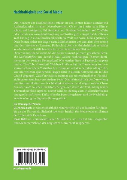 Dieser Sammelband verbindet die bisher zumeist getrennt gedachten Bereiche Nachhaltigkeit und Social Media. Welche nachhaltigen Themen dominieren in den sozialen Netzwerken? Wie werden diese in Facebook rezipiert und auf YouTube diskutiert? Welchen Einfluss hat die Darstellung von ressourcenschonendem Verhalten bei Instagram auf den privaten Alltag? Diesen und weiteren spannenden Fragen wirdin diesem Kompendium auf denGrund gegangen. Zwölf innovative Beiträge aus unterschiedlichen Fachdisziplinen untersuchen verschiedene Social Media hinsichtlich der Darstellung und Kommunikation von Nachhaltigkeitsthemen und zeigen, welche Chancen, aber auch welche Herausforderungen sich durch die Verbindung beider Themenkomplexe ergeben. Damit wird ein Beitrag zum wissenschaftlichen und gesellschaftlichen Diskurs beider Bereiche geleistet und die Nachhaltigkeitsforschung im digitalen Raum gestärkt.