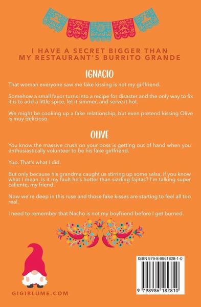 I have a secret bigger than my restaurant's burrito grande. IGNACIO That girl everyone saw me fake kissing is not my girlfriend. Somehow a small favor turns into a recipe for disaster and the only way to fix it is to add a little spice, let it simmer, and serve it hot. We might be cooking up a fake relationship, but even pretend kissing Olive is muy delicioso. OLIVE You know your massive crush on your boss is getting out of hand when you enthusiastically volunteer to be his fake girlfriend. Yup. That's what I did. But only because his grandma caught us stirring up some salsa, if you know what I mean. Is it my fault he's hotter than sizzling fajitas? I'm talking super caliente, my friend. Now we're deep in this ruse and those fake kisses are starting to feel all too real. I need to remember that Nacho is not my boyfriend before I get burned. *Nacho Boyfriend is a closed door romantic comedy with mild swears, steamy kisses, and humorous innuendo.