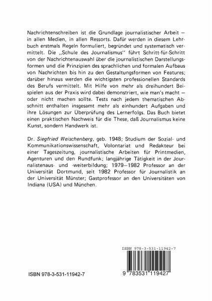 Nachrichtenschreiben ist die Grundlage journalistischer Arbeit - in allen Medien, in allen Ressorts. Dafür werden in diesem Lehrbuch erstmals Regeln formuliert, begründet und systematisch vermittelt. Die "Schule des Journalismus" führt Schritt-für-Schritt von der Nachrichtenauswahl über die journalistischen Darstellungsformen und die Prinzipien des sprachlichen und formalen Aufbaus von Nachrichten bis hin zu den Gestaltungsformen von Features, darüber hinaus werden die wichtigsten professionellen Standards des Berufes vermittelt. Mit Hilfe von mehr als dreihundert Beispielen aus der Praxis wird dabei demonstriert, wie man's macht - oder nicht machen sollte. Tests nach jedem thematischen Abschnitt enthalten insgesamt mehr als einhundert Aufgaben und ihre Lösungen zur Überprüfung des Lernerfolgs. Das Buch bietet einen praktischen Nachweis für die These, daß Journalismus keine Kunst, sondern Handwerk ist."(...) für alle angehenden und ihr Handwerk noch nicht so sicher beherrschenden Journalisten ist das Buch auf jeden Fall eine empfehlenswerte Lektüre."Journalist, 3/89"Zum ersten Mal bietet ein in journalistischen als auch akademischen Kreisen anerkannter Autor ein didaktisch aufbereitetes Handbuch an, das sich nicht in die scheinbar sicheren Gefilde von Expertenurteilen zurückzieht, sondern Regeln zum richtigen Schreiben entwirft". Lektüre 29/1989