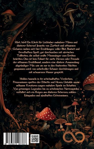 Hört, hört! Ein Werk für Liebhaber makabrer Mären und düsterer Scherze!Jenseits von Zartheit und sittsamem Gebaren ranken sich hier Erzählungen voller Blut, Bosheit und frevelhaftem Spott, gar durchwoben mit närrischen Tollheiten, die selbst uralte Minnesänger zum Erröten brächten. Dies ist kein Foliant für zarte Herzen oder Freunde der sittsamen Erzählkunst, sondern eine düstere Ansammlung abgründiger Mär, wie sie nur in den finstersten Nächten gesponnen wird: von unheilvoller Schauer durchdrungen und mit schwarzem Humor gespickt.Helden taumeln in ihr schicksalhaftes Verderben, Prinzessinnen spotten der Etikette und Hexen, Unholde sowie seltsame Kreaturen wagen makabre Spiele im Schatten. Von grimmigen Legenden bis zu schelmischen Narrenspielen entfaltet sich ein Reigen aus düsteren Scherzen, wilden Eskapaden und sündhaften Geheimnissen.