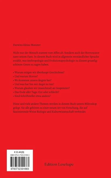 In allgemein verständlicher Sprache werden die teilweise hoch aktuellen Erkenntnisse der evolutionären Psychologie und der evolutionären Kulturtheorie aufs unheimliche und Horrorgenre angewandt. Vor allem wird dabei nach den evolutionären Wurzeln der wichtigsten Motive dieser Gattung gesucht.