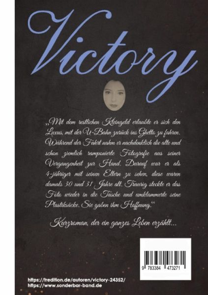 An seinem 18. Geburtstag reist ein junger Mann nach Amerika. Sein Innerer Instinkt ließ ihn schon von Jungend an ahnen das er anders war, als die gleichaltrigen Jungs in seiner Umgebung. Immer wieder Erinnert er sich an eine Melodie eines Klavierstückes. Damals , als der Zunami viele Leben aus dem Leben riss, hatte er ihn als kleiner Junge überlebt, dank des Schutzes einer Palme, an dieser er sich mit aller Kraft fest hielt.Er lebte nach einem schweren Traumata bei seinem Vater, dieser ein Einheimischer älterer Lehrer war. Alles was davor geschah, war aus seinem Gedächnis gelöscht.Auf der Reise und in Amerika geschehen Mysteriöse Dinge, als sei es vom Schicksal geführt.Mysteriös und Unglaublich und doch Wahr.Ein kleines Büchlein, von Victory (Drehbuchautorin, Schriftstellerin) das eine ganzes Leben Erzählt. ..