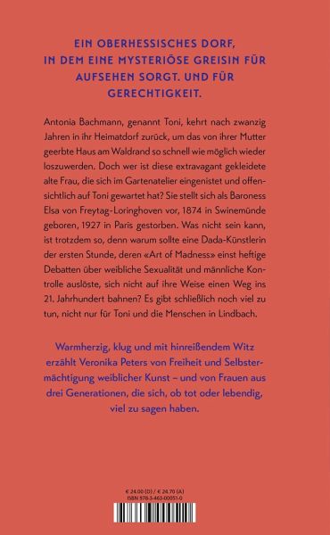 In Veronika Peters neuem Roman Nackt war ich am schönsten kehrt Antonia Bachmann, genannt Toni, aus der Bretagne in ihr oberhessisches Heimatdorf zurück, nachdem sie das alte Haus ihrer Mutter am Waldrand geerbt hat. Das Verhältnis zur Mutter war angespannt, Toni taucht erst zwei Wochen nach der Beerdigung in Lindbach auf, mit dem Ziel, das Haus schnellstmöglich loszuwerden. Doch wer ist diese extravagant gekleidete alte Frau, die sich im Gartenatelier eingerichtet und offensichtlich auf Toni gewartet hat? Sie stellt sich als Baroness Elsa von Freytag-Loringhoven vor, eine exzentrische Dada-Künstlerin, die einst heftige Debatten über weibliche Selbstermächtigung auslöste.