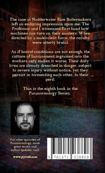 The case at Nadderwater Rise Boilermakers left an enduring impression upon me. The Professor and I witnessed first-hand how machines can turn on their masters. When directed by a malevolent force, the results were utterly brutal. As if horrid conditions are not enough, the culture of harassment ingrained into the workers only makes it worse. Their daily lives are already drenched in danger, subject to severe injury without notice, yet they persist in tormenting each other, to their peril. This is the eighth book in the Paranormology Series.