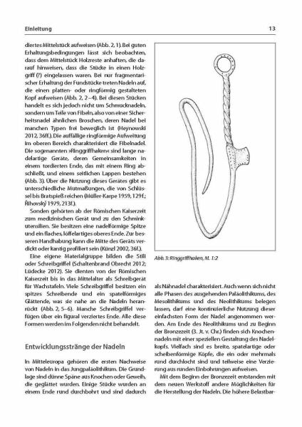 Näh- und Stecknadeln sind unverzichtbar bei der Herstellung von Bekleidung, Nadeln dienen als Schmuck, zur Körperverzierung oder auch als Werkzeug bei der Metallbearbeitung. Material sind Knochen oder Metalle, schlichte Ausführungen stehen neben aufwendig, auch figürlich verzierten Exemplaren. Der Thesaurus stellt die überraschende Vielfalt der Typen und Formen vor. Er kann von Laien wie auch von Wissenschaftlern benutzt werden und bietet verschiedene Erschließungstiefen bei der Inventarisierung. Jedem Begriff sind eine Definition, ein Quellennachweis und eine Abbildung beigefügt. Zur Einordnung der Objekttypen werden Hinweise zur Datierung und Verbreitung gegeben.