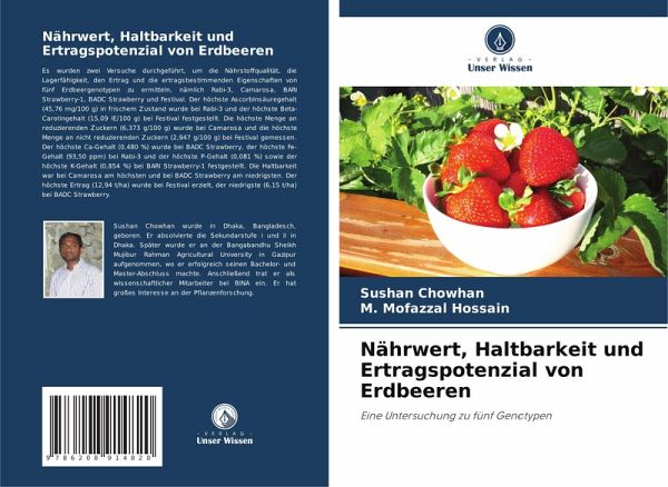Es wurden zwei Versuche durchgeführt, um die Nährstoffqualität, die Lagerfähigkeit, den Ertrag und die ertragsbestimmenden Eigenschaften von fünf Erdbeergenotypen zu ermitteln, nämlich Rabi-3, Camarosa, BARI Strawberry-1, BADC Strawberry und Festival. Der höchste Ascorbinsäuregehalt (45,76 mg/100 g) in frischem Zustand wurde bei Rabi-3 und der höchste Beta-Carotingehalt (15,09 IE/100 g) bei Festival festgestellt. Die höchste Menge an reduzierenden Zuckern (6,373 g/100 g) wurde bei Camarosa und die höchste Menge an nicht reduzierenden Zuckern (2,947 g/100 g) bei Festival gemessen. Der höchste Ca-Gehalt (0,480 %) wurde bei BADC Strawberry, der höchste Fe-Gehalt (93,50 ppm) bei Rabi-3 und der höchste P-Gehalt (0,081 %) sowie der höchste K-Gehalt (0,854 %) bei BARI Strawberry-1 festgestellt. Die Haltbarkeit war bei Camarosa am höchsten und bei BADC Strawberry am niedrigsten. Der höchste Ertrag (12,94 t/ha) wurde bei Festival erzielt, der niedrigste (6,15 t/ha) bei BADC Strawberry.