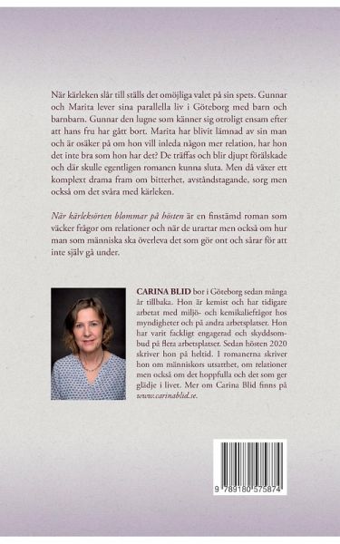 När kärleken slår till ställs det omöjliga valet på sin spets. Gunnar och Marita, lever sina parallella liv i Göteborg, med barn och barnbarn. Gunnar den lugne, som känner sig otroligt ensam efter att hans fru har gått bort. Marita har blivit lämnad av sin man och är osäker på om hon vill inleda någon mer relation, har hon det inte bra som hon har det? De träffas och blir djupt förälskade och där skulle egentligen romanen kunna sluta. Men då växer ett komplext drama fram om bitterhet, avståndstagande, sorg men också om det svåra med kärleken. När kärleksörten blommar på hösten, är en finstämd roman som väcker frågor om relationer och när de urartar men också om hur man som människa ska överleva det som gör ont och sårar, för att inte själv gå under.