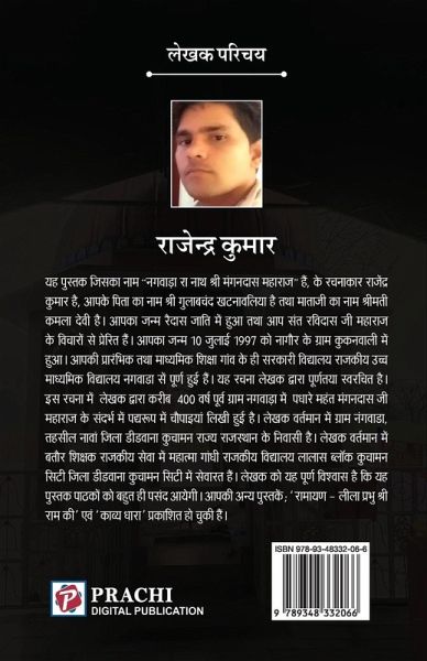 The book "Nagwada Ra Nath Shri Mangandas Maharaj" is a religiously significant work that delves into the divine glory and penance of Shri Mangandas Ji Maharaj, a revered ascetic saint from the village of Nagwada, situated in the Navan Tehsil of Nagaur district (now part of Didwana Kuchaman) in Rajasthan. Through this book, the author seeks to touch upon the divine powers and the spiritual significance of the saint's penance. The author believes that there is no better alternative than documenting our cultural heritage in literary form to keep it alive for eternity. In this book, the author describes Shri Mangandas Ji Maharaj's penance through the use of Chaupais. The great sage also established Mangdham in the village, which helped spread the fame of Shri Mangandas Ji Maharaj far and wide, reaching the hearts of countless people.