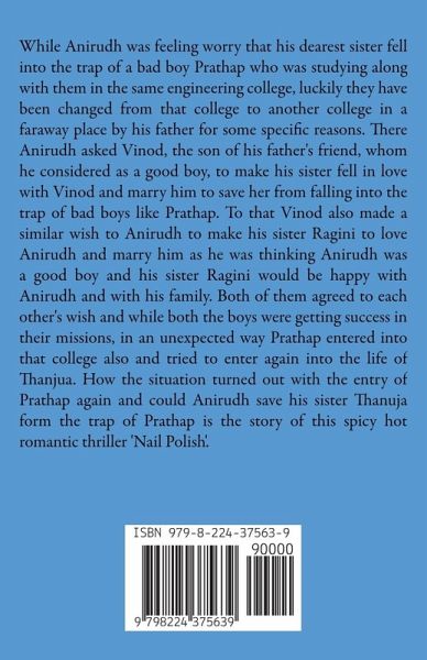 While Anirudh was feeling worry that his dearest sister fell into the trap of a bad boy Prathap who was studying along with them in the same engineering college, luckily they have been changed from that college to another college in a faraway place by his father for some specific reasons. There Anirudh asked Vinod, the son of his father's friend, whom he considered as a good boy, to make his sister fell in love with Vinod and marry him to save her from falling into the trap of bad boys like Prathap. To that Vinod also made a similar wish to Anirudh to make his sister Ragini to love Anirudh and marry him as he was thinking Anirudh was a good boy and his sister Ragini would be happy with Anirudh and with his family. Both of them agreed to each other's wish and while both the boys were getting success in their missions, in an unexpected way Prathap entered into that college also and tried to enter again into the life of Thanjua. How the situation turned out with the entry of Prathap again and could Anirudh save his sister Thanuja form the trap of Prathap is the story of this spicy hot romantic thriller 'Nail Polish'.