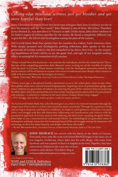 Cutting-edge missional witness just got bloodier and yet more hopeful than ever! Many Christians in America have lost loved ones who gave their lives in military service to save the country and the ""free world."" John Shorack is one of them. His father, Theodore James Shorack Jr., was shot down in Vietnam in 1966. Unlike many, John didn't conform to his father's legacy of military sacrifice for the nation. He found a completely different way to give his life--for Christ and his kingdom among the poor of the nations. Nail Scarred Hands Made New speaks from the trenches of a violent, Latin American slum. With deeply personal and theologically probing reflections, John speaks to the next generation of mission workers who feel compelled to lay down their lives--in the surprising hopefulness of God's ability to use the good, bad, and ugly of our kingdom-seeking efforts to accomplish his restoration of all creation.