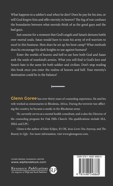 What happens to a soldier's soul when he dies? Does he pay for his sins, or will God forgive him and offer eternity in heaven? The fog of war confuses the boundaries between what mortals think of as the good guys and the bad guys. Just assume for a moment that God's angels and Satan's demons battle over mortal souls. Satan would have to train his army of evil warriors to excel in this business. How does he set up his boot camp? What methods does he encourage his dark knights to use against humans? Enter the worlds of heaven and hell to see how both God and Satan seek the souls of mankind's armies. What you will find is God's love and Satan's hate is the same for both soldier and civilian. Don't stop reading this book once you enter the realms of heaven and hell. Your eternity's destination could be in the balance!