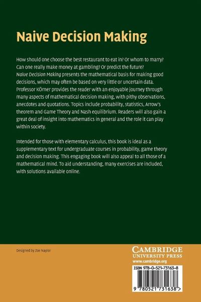 Takes readers on an enjoyable journey through many aspects of mathematical decision making; the only prerequisite is elementary calculus.