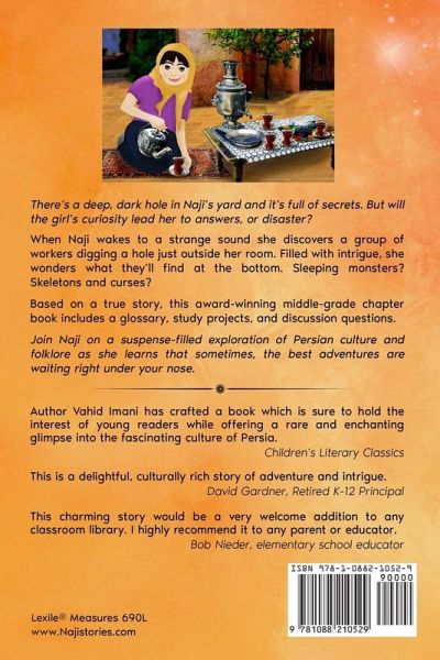 There's a deep, dark hole in Naji's yard and it's full of secrets. But will the girl's curiosity lead her to answers, or disaster? When Naji wakes to a strange sound she discovers a group of workers digging a hole just outside her room. Filled with intrigue, she wonders what they'll find at the bottom. Sleeping monsters? Skeletons and curses? Her father warns her to stay away. The worksite is no place for a child, and if she isn't careful, she'll be snatched up by a Looloo; mythical creatures that lurk in the shadows. Summoning her courage, Naji decides to investigate-until a terrible event leaves the whole neighborhood panicking. Have the terrifying Looloos struck again? As it turns out, the answer is far more surprising than Naji and her father could ever imagine. Based on a true story, this award-winning middle-grade chapter book includes a glossary, study projects, and discussion questions Join Naji on a suspense-filled exploration of Persian culture and folklore as she learns that sometimes, the best adventures are waiting right under your nose. Lexile® Measures 690L