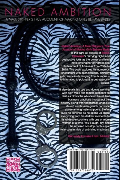 Naked Ambition: A Male Stripper's True Account of Making Girls Behave Badly is the bare-all expose of Stefan Diamante's dizzying highs and destructive lows as the owner and lead male entertainer of Hardbodies Entertainment of Arkansas from 2004 to 2018. The book explores his numerous encounters with bachelorettes, birthday girls, and clients ranging from humorous to infuriating to poignant to outrageously sexual. It also details his ups and downs working with both male and female strippers as well as blows the whistle on fraudulent business practices throughout the industry along with widespread anabolic steroid and human growth hormone abuse among male strippers. Stefan pulls no punches as he opens up about everything from his darkest moments to his wildest encounters with one or more women at a time. You'll laugh, cry, and be aroused nonstop on this epic rollercoaster ride of unbridled craziness. This version, The Last Temptation Edition, features a new cover as well as a second epilogue detailing new developments two years following the first edition publication.