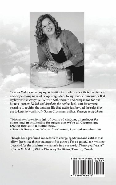 Naked and Awake: Break The Rules, Lose Control and Reclaim Your Life "… I’ve realized who I am; I am a seer and energy conduit and a guide for people to remember who they really are, and live out their purpose. I know that I am here to assist people who know they too have a purpose, but they don’t know how to get past the stuff that stops them… and they’ve tried. I am inspired to use what I have learned and the abilities I was given to help others to thrive instead of just survive. So, read this book, embrace who you are… Release your fear, release your anxiety and let this book help you come home to who you truly are. Love bombs!," – Kaayla Vedder (excerpt from the Foreword) "Naked and Awake is full of pearls of wisdom; it is a reminder for some, and an awakening for others that we are all Creators and Divine Beings in a human body. Kaayla is witty, charming, authentic and fun. Her sharing is heartfelt, her intention to raise consciousness is evident, and her desire for the liberation of humanity comes forth in her writing." – Bonnie Serratore, Spiritual Acceleration "Kaayla Vedder serves up opportunities for readers to see their lives in new and empowering ways while opening a doorway into the mysterious dimensions that lay beyond the everyday. Written with warmth and compassion for our human journey, Naked and Awake is the perfect kick-start for anyone yearning to reclaim the amazing life that awaits, just beyond the rules they are using to keep joy confined." - Susan Crossman, Crossman Communications "… Kaayla uncovered limiting beliefs that I'm not deserving of abundance and acknowledgement. Now I can dissolve these beliefs and enjoy a balanced rich life... Kaayla has a profound connection to energy, spectrums and entities that allow her to see things most of us cannot. I’m so grateful for what she does and for the wisdom she channels into our world." - Justin McMakin, Vision Discovery Facilitator