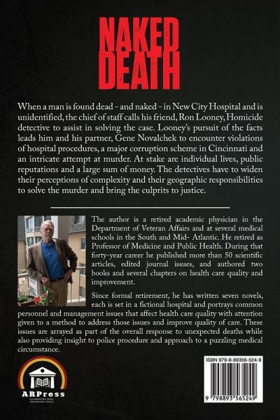 A death in the hospital is sad but not unexpected at times. A man found dead outside of the treatment areas is unusual, however. The circumstances are even more uncommon when the man is naked and cannot be identified. At this point, Tom Bolling, chief of staff at New City Hospital in Cincinatti gets involved. He determines the man's death was a murder and he involves his friend, Homicide Detective Ron Looney, to take on the resolution of the case. Tom has his hands full with managing release of information and evaluating the quality of care issues raised by the investigation. The detectives, Ron Looney and Gene Novalchek, are initially stymied by their inability to identify the dead man; once they do, however, they find themselves going deeper into a major corruption scheme. Then, players unknown to the detectives attempt an intricate murder scheme but their attempt is blown up at the last second and the detectives are alerted. With that new information the detectives become aware of potential involvement of public figures and a large amount of money. The interplay among the various figures and their avoidance of the police requires the detectives to widen their perceptions of complexity and their geographic responsibilities to solve the murder and bring the culprits to justice.