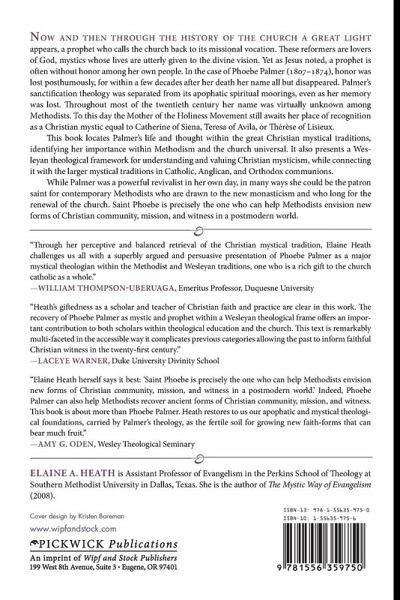 Now and then through the history of the church a great light appears, a prophet who calls the church back to its missional vocation. These reformers are lovers of God, mystics whose lives are utterly given to the divine vision. Yet as Jesus noted, a prophet is often without honor among her own people. In the case of Phoebe Palmer (1807-1874), honor was lost posthumously, for within a few decades after her death her name all but disappeared. Palmer's sanctification theology was separated from its apophatic spiritual moorings, even as her memory was lost. Throughout most of the twentieth century her name was virtually unknown among Methodists. To this day the Mother of the Holiness Movement still awaits her place of recognition as a Christian mystic equal to Catherine of Siena, Teresa of Avila, or Therese of Lisieux. This book locates Palmer's life and thought within the great Christian mystical traditions, identifying her importance within Methodism and the church universal. It also presents a Wesleyan theological framework for understanding and valuing Christian mysticism, while connecting it with the larger mystical traditions in Catholic, Anglican, and Orthodox communions. While Palmer was a powerful revivalist in her own day, in many ways she could be the patron saint for contemporary Methodists who are drawn to the new monasticism and who long for the renewal of the church. Saint Phoebe is precisely the one who can help Methodists envision new forms of Christian community, mission, and witness in a postmodern world.