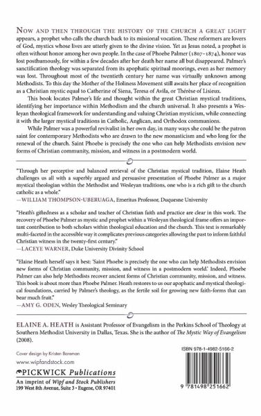 Now and then through the history of the church a great light appears, a prophet who calls the church back to its missional vocation. These reformers are lovers of God, mystics whose lives are utterly given to the divine vision. Yet as Jesus noted, a prophet is often without honor among her own people. In the case of Phoebe Palmer (1807-1874), honor was lost posthumously, for within a few decades after her death her name all but disappeared. Palmer's sanctification theology was separated from its apophatic spiritual moorings, even as her memory was lost. Throughout most of the twentieth century her name was virtually unknown among Methodists. To this day the Mother of the Holiness Movement still awaits her place of recognition as a Christian mystic equal to Catherine of Siena, Teresa of Avila, or Therese of Lisieux. This book locates Palmer's life and thought within the great Christian mystical traditions, identifying her importance within Methodism and the church universal. It also presents a Wesleyan theological framework for understanding and valuing Christian mysticism, while connecting it with the larger mystical traditions in Catholic, Anglican, and Orthodox communions. While Palmer was a powerful revivalist in her own day, in many ways she could be the patron saint for contemporary Methodists who are drawn to the new monasticism and who long for the renewal of the church. Saint Phoebe is precisely the one who can help Methodists envision new forms of Christian community, mission, and witness in a postmodern world.