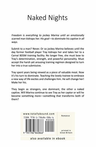 Freedom is everything to jockey Marina until an emotionally scarred man kidnaps her. His goal—to dominate his captive in all ways. Submit to a man? Never. Or so jockey Marina believes until the day former football player Tray kidnaps her and takes her to a Carnal BDSM training facility. No longer free, she must bow to Tray’s determination, strength, and powerful personality. Must accept the harsh yet arousing training regimen designed to turn her into a true submissive. Tray spent years being viewed as a piece of valuable meat. Now it’s his turn to dominate. Teaching the lovely trainee to embrace a new way of life excites and challenges him. He will change her! Make her his. They begin as strangers, one dominant, the other a naked captive. Will Marina continue to see Tray as her captor or will he become something more—something that transforms both of them?