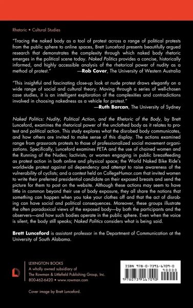 Although public nudity as a form of political action has a long history, Naked Politics: Nudity, Political Action, and the Rhetoric of the Body examines political nudity from a rhetorical standpoint. Beginning with the notion that the body itself is communicative beyond the ability to speak, this work examines cases in which people employ the disrobed body for political ends.