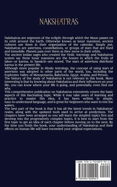 Have you ever looked up at the stars and wondered if their presence affected your life? Have you seen the twinkle of these wondrous-looking heavenly bodies and wondered which of them represents you and why? Have you heard about Vedic Astrology's mystified concept of Nakshatras and wondered if you could learn it? Can the knowledge of these Nakshatras and their influence on people's lives help in any way? If you want to find answers to any of the above questions, you have come to the right place. This book of Nakshatras is the ideal place for beginners looking to test the waters of this vast and fascinating topic that has been in use for centuries now. Answers to the following questions can be found in this book:What are Nakshatras or Lunar Mansions? How does the Lunar Mansions influence people? Detailed explanations of the 27 Nakshatras. What and how are Janma, Trijanma, and Anujamna Nakshatras related to each other? Who are the rulers and lords of these Nakshatras? How can you see the asterisms to help fix auspicious times? How do Nakshatras play a role in domestic life, including marriages, relationships, and careers? What is the meaning of muhurta? You also get a bonus chapter that covers the enigmatic K. P. System of Stellar Astrology. If you seek answers to any of the above questions and more regarding asterisms and the lunar mansions of Vedic astrology, get a copy of this book today!
