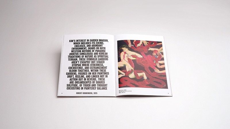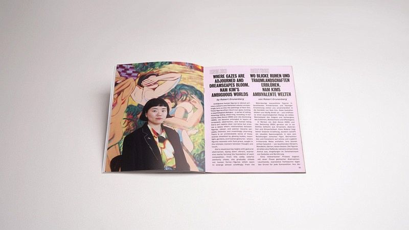 Die großformatige Malerei von Nam Kim (geb. 1991, lebt in Wien) wird von massiven androgynen, nackten Figuren bevölkert, die sich behutsam in Vegetation, Licht und Schatten oder Ornamente einfügen. "Die Figuren strahlen eine fließende, beinahe schwerelose Anmut aus, eingefangen im Zwischenraum von Gedanke und Berührung." (R. Grunenberg) Der menschliche Körper ist seiner natürlichen Umgebung ebenbürtig und untrennbar von ihr. Kim beginnt mit Zonen gestischer Abstraktion, aus denen Figuren wie Pflanzen in die Komposition wuchern. Kim wuchs in Korea auf und ihre Malerei verbindet Elemente asiatischer Traditionen (in Kunst und Theater) mit westlicher Kunstgeschichte und mit Virtualität. Dieser Band stellt Kims Gemälde der letzten drei Jahre vor und enthält einen aufschlussreichen Essay von Robert Grunenberg.