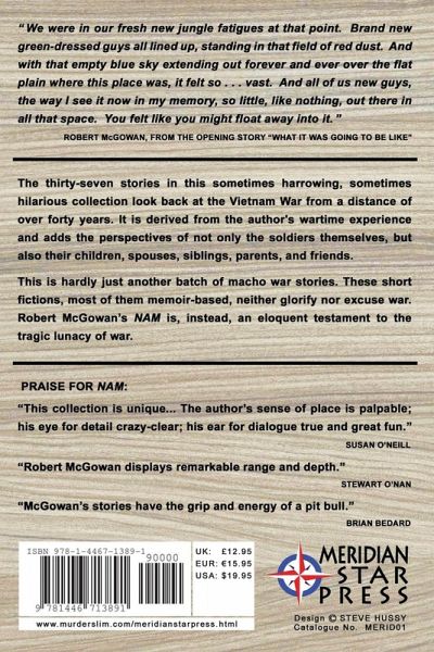 Derived of the author's Vietnam War experience, the thirty-seven stories in this sometimes harrowing, sometimes hilarious collection look back at the Vietnam War from a distance of forty or more years, nearly a half-century, and via the perspectives of not only the soldiers themselves, but also their children, spouses, siblings, parents, friends. Nothing comparable to this collection exists within the literature growing out of the Vietnam War. NAM is hardly just another batch of macho war stories. These short fictions, most of them memoir-based, neither glorify nor even excuse war but come forward instead as eloquent testament to the tragic lunacy of it.