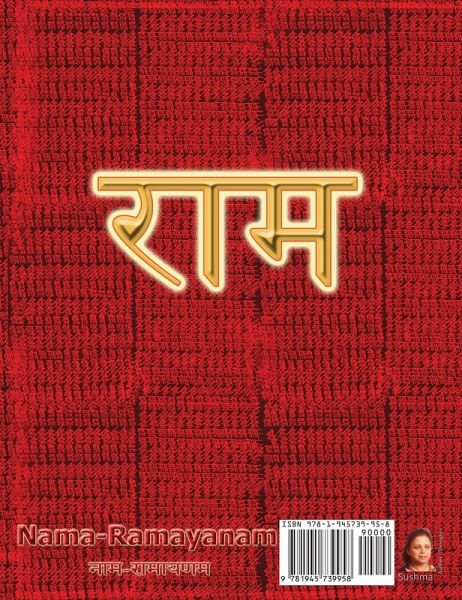 This Journal Book contains Nama-Ramayanam Text around which the Holy-Name Rama Name can be written. Also Transliteration & Translation of the Verses is provided on every page; and the full text is repeated at the end as well. Once embellished with your Rama-Namas, this will become a priceless treasure which you can present to your loved ones--an unparalleled gift of love, labor, caring, wishing, and above all: Devotion.