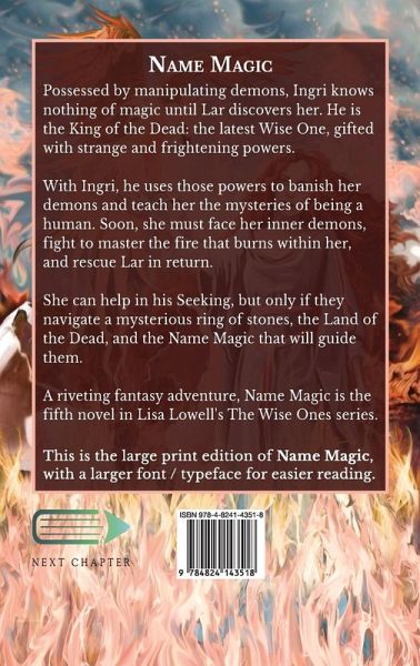 Possessed by manipulating demons, Ingri knows nothing of magic until Lar discovers her. He is the King of the Dead: the latest Wise One, gifted with strange and frightening powers. With Ingri, he uses those powers to banish her demons and teach her the mysteries of being a human. Soon, she must face her inner demons, fight to master the fire that burns within her, and rescue Lar in return. She can help in his Seeking, but only if they navigate a mysterious ring of stones, the Land of the Dead, and the Name Magic that will guide them. A riveting fantasy adventure, Name Magic is the fifth novel in Lisa Lowell's The Wise Ones series. This is the large print edition of Name Magic, with a larger font / typeface for easier reading.