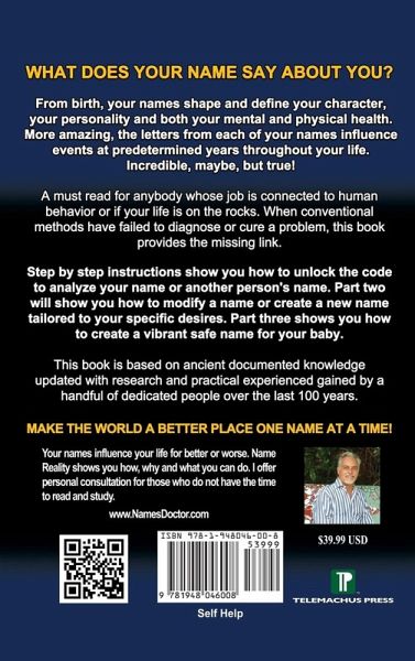 This analysis system was originally used in ancient times by affluent families to name their children for a prosperous happy and healthy life. It has been documented many times over the last several thousand years and was for the most, kept a secret. When you see for yourself how accurate this system is, you will understand why it has been kept under wraps. From birth, your names shape and define your character, your personality, both your mental and physical health. More amazing, the letters from each of your names influence events at predetermined years throughout your life. Incredible, maybe, but true! Name Reality shows you how, why and what you can do. The cover of my book describes the remarkable information at your fingertips. The introduction tells you the history and how you can use this system to your advantage. The chapters that follow show you how to crack the code to analyze yourself or another person and understand why people behave the way they do. Self-awareness gives you the opportunity to take better control of your life. It goes further and shows you how to modify a name or create a new vibrant positive name for you or your baby. Yes, incredible as it may seem, changing your name can change the way you live your life. This book gives you the opportunity to discover for yourself that this is real, a genuine reality, that names affect the lives of everybody on this planet. Name Reality shows why some of us appear to lead happy stress free lives and others do not. Name Reality shows why some years you try so hard but cannot get ahead. Parents unknowingly name their kids with a life of bliss, fame and fortune or sickness, doom and gloom. This book is a must read for anybody whose job is connected to human behaviour or if your life is on the rocks. When conventional methods have failed to diagnose or cure a problem, this book provides the missing link. This incredible system can be your turning point if you want to understand yourself better, if you need to improve specific areas of your life, or if you want to create a new, vibrant, healthy, successful, happy name for yourself or for your baby. Start reading Name Reality now.
