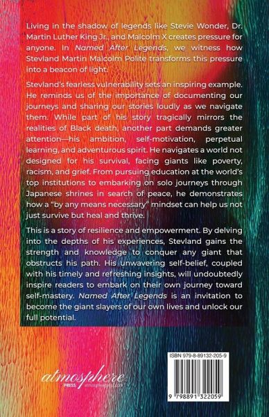 Living in the shadow of legends like Stevie Wonder, Dr. Martin Luther King Jr., and Malcolm X creates pressure for anyone. In Named After Legends, we witness how Stevland Martin Malcolm Polite transforms this pressure into a beacon of light. Stevland's fearless vulnerability sets an inspiring example. He reminds us of the importance of documenting our journeys and sharing our stories loudly as we navigate them. While part of his story tragically mirrors the realities of Black death, another part demands greater attention-his ambition, self-motivation, perpetual learning, and adventurous spirit. He navigates a world not designed for his survival, facing giants like poverty, racism, and grief. From pursuing education at the world's top institutions to embarking on solo journeys through Japanese shrines in search of peace, he demonstrates how a "by any means necessary" mindset can help us not just survive but heal and thrive. This is a story of resilience and empowerment. By delving into the depths of his experiences, Stevland gains the strength and knowledge to conquer any giant that obstructs his path. His unwavering self-belief, coupled with his timely and refreshing insights, will undoubtedly inspire readers to embark on their own journey toward self-mastery. Named After Legends is an invitation to become the giant slayers of our own lives and unlock our full potential.