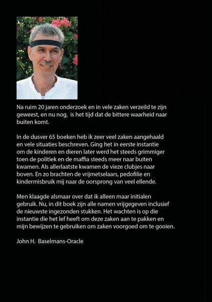 Na ruim 20 jaren onderzoek en in vele zaken verzeild te zijn geweest, en nu nog, is het tijd dat de bittere waarheid naar buiten komt. In de dusver 65 boeken heb ik zeer veel zaken aangehaald en vele situaties beschreven. Ging het in eerste instantie om de kinderen en dieren later werd het steeds grimmiger toen de politiek en de maffia steeds meer naar buiten kwamen. Als allerlaatste kwamen de vieze clubjes naar boven. En zo brachten de vrijmetselaars, pedofilie en kindermisbruik mij naar de oorsprong van veel ellende. Men klaagde alsmaar over dat ik alleen maar initialen gebruik. Nu, in dit boek zijn alle namen vrijgegeven inclusief de nieuwste ingezonden stukken. Het wachten is op die instantie die het lef heeft om deze zaken aan te pakken en mijn bewijzen te gebruiken om zaken voorgoed om te gooien.