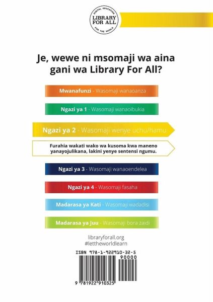 A stranger wants to join in on a village dance, but people laugh at him. He curses them to become stone. Mtu asiyemjua anataka kushiriki katika dansi ya kijijini, lakini watu wanamcheka. Anawalaani wawe jiwe. Your purchase of this book supports Library For All in its mission to make knowledge available to all, equally.