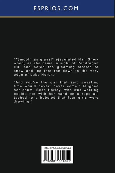 ""Smooth as glass!" ejaculated Nan Sherwood, as she came in sight of Pendragon Hill and noted the gleaming stretch of snow and ice that ran down to the very edge of Lake Huron. "And you're the girl that said coasting time would never, never come," laughed her chum, Bess Harley, who was walking beside her with her hand on a rope attached to a bobsled that four girls were drawing."