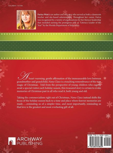 A heart-warming, gentle affirmation of the immeasurable love between grandmother and grandchild, Nana Claus is a touching remembrance of the true magic of Christmas. Told from the perspective of young children who eagerly await a special visitor each holiday season, this treasured story is certain to evoke memories of Christmas past in all who read it, both young and old. Taking the commercialism right out of Christmas, Nana Claus instead shifts the focus of the holiday season back to a time and place where forever memories are made.....reminding us of a simpler time, and most importantly, reminding us that love is the greatest and most everlasting gift of all.