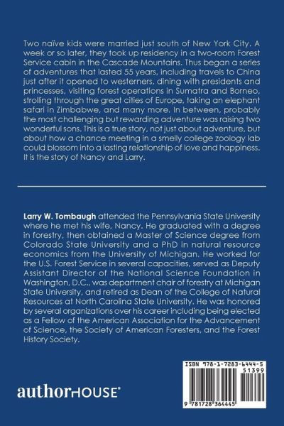 Two naïve kids were married just south of New York City. A week or so later, they took up residency in a two-room Forest Service cabin in the Cascade Mountains. Thus began a series of adventures that lasted 55 years, including travels to China just after it opened to westerners, dining with presidents and princesses, visiting forest operations in Sumatra and Borneo, strolling through the great cities of Europe, taking an elephant safari in Zimbabwe, and many more. In between, probably the most challenging but rewarding adventure was raising two wonderful sons. This is a true story, not just about adventure, but about how a chance meeting in a smelly college zoology lab could blossom into a lasting relationship of love and happiness. It is the story of Nancy and Larry.