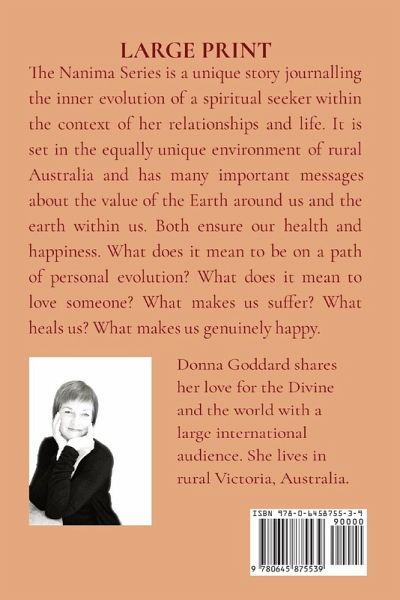 This is the LARGE PRINT of Nanima (Book 1 of Nanima Series). Nanima is a place of rivers and soil, memory and mystery. It is also the next step in Maliyan's spiritual life-one shaped not by confusion or loss, but by readiness. Her arrival in the small rural town deepens her connection to the energetic fabric of existence: the pull of ancestry, the guidance of nature, and the relationships that shape her inner and outer world. One such relationship is with Luna-a vibrant and unpredictable companion whose wit and humour reveal a quick mind, but also veil a tender and searching soul. While Maliyan offers him steady love and spiritual insight, Luna begins-however haltingly-to respond. Their connection is turbulent yet rich, shaped by unspoken affection, emotional honesty, and the stirrings of a deeper awakening. Nanima is the first step in a contemplative spiritual fiction series that honours the land beneath our feet, the knowing within our hearts, and the sacred moments that change us.