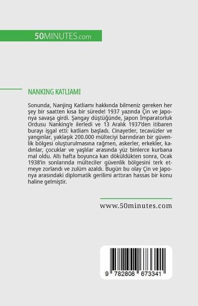Sonunda, Nanjing Katliam¿ hakk¿nda bilmeniz gereken her ¿ey bir saatten k¿sa bir sürede! 1937 yaz¿nda Çin ve Japonya saväa girdi. ¿angay dü¿tü¿ünde, Japon ¿mparatorluk Ordusu Nanking'e ilerledi ve 13 Aral¿k 1937'den itibaren buray¿ i¿gal etti: katliam bälad¿. Cinayetler, tecavüzler ve yang¿nlar, yaklä¿k 200.000 mülteciyi bar¿nd¿ran bir güvenlik bölgesi olu¿turulmas¿na rämen, askerler, erkekler, kad¿nlar, çocuklar ve yäl¿lar aras¿nda yüz binlerce kurbana mal oldu. Alt¿ hafta boyunca kan döküldükten sonra, Ocak 1938'in sonlar¿nda mülteciler güvenlik bölgesini terk etmeye zorland¿ ve zulüm azald¿. Bugün bu olay Çin ve Japonya aras¿ndaki diplomatik gerilimi artt¿ran hassas bir konu haline gelmi¿tir.