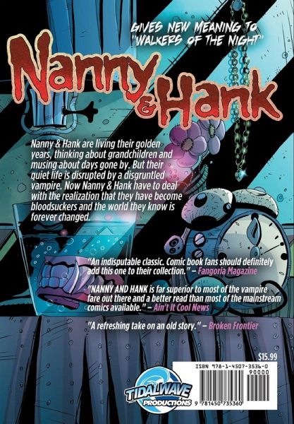 NANNY & HANK Vol.1 - The critically acclaimed miniseries mixing horror & heart from AICN Comics writer Mark L. Miller gets collected! Nanny & Hank are ready for their golden years, but a blood-drunk vampire turns their life upside down! Now the elderly pair must deal with becoming creatures of the night & take care of their ornery grandkids too!