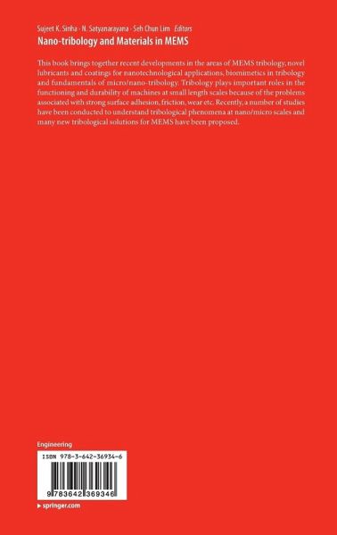 This book brings together recent developments in the areas of MEMS tribology, novel lubricants and coatings for nanotechnological applications, biomimetics in tribology and fundamentals of micro/nano-tribology. Tribology plays important roles in the functioning and durability of machines at small length scales because of the problems associated with strong surface adhesion, friction, wear etc. Recently, a number of studies have been conducted to understand tribological phenomena at nano/micro scales and many new tribological solutions for MEMS have been proposed.