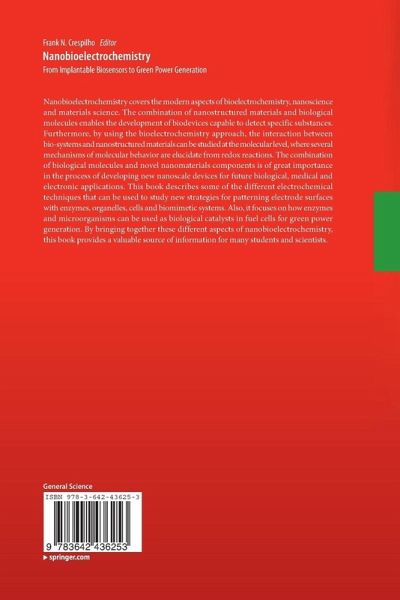 Nanobioelectrochemistry covers the modern aspects of bioelectrochemistry, nanoscience and materials science. The combination of nanostructured materials and biological molecules enables the development of biodevices capable to detect specific substances. Furthermore, by using the bioelectrochemistry approach, the interaction between bio-systems and nanostructured materials can be studied at the molecular level, where several mechanisms of molecular behavior are elucidate from redox reactions. The combination of biological molecules and novel nanomaterials components is of great importance in the process of developing new nanoscale devices for future biological, medical and electronic applications. This book describes some of the different electrochemical techniques that can be used to study new strategies for patterning electrode surfaces with enzymes, organelles, cells and biomimetic systems. Also, it focuses on how enzymes and microorganisms can be used as biological catalysts in fuel cells for green power generation. By bringing together these different aspects of nanobioelectrochemistry, this book provides a valuable source of information for many students and scientists.