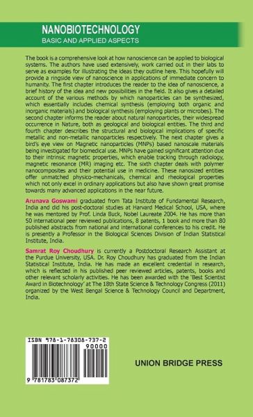 'Nanobiotechnology, basic and applied aspects' is expected to be of tremendous value to the group of scientists, involved in both basic and applied biology and engineering. The proposed book is a comprehensive compendium of basics of nanoscience and its application in biophysical and biomedical problems. The book describes a brief history and evolution of nanoscience in the first two chapters, which is interesting, and an enriched resource for the undergraduates of nanotechnology and biotechnology. The subsequent chapters gives an in-depth idea of different nanomaterials and their diverse biological applications such as bio-imaging, drug-development, drug-delivery, biosensors etc.. The book could also be immensely interesting for the geologists and naturalists, since it reports the occurrence of nanoparticles, which are derived from biological samples of human, and plants or of edaphic origin. In summary, the book proposed could be a reference or ready-reckoner in the undergraduate/college course-works in nanoscience and nano-biotechnology. It also gives a clear idea of different research directions in the field of nanobiotechnology.